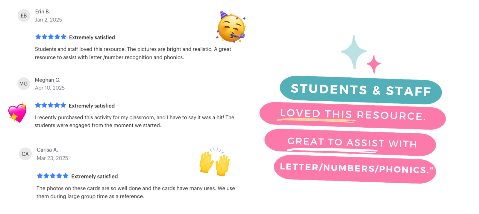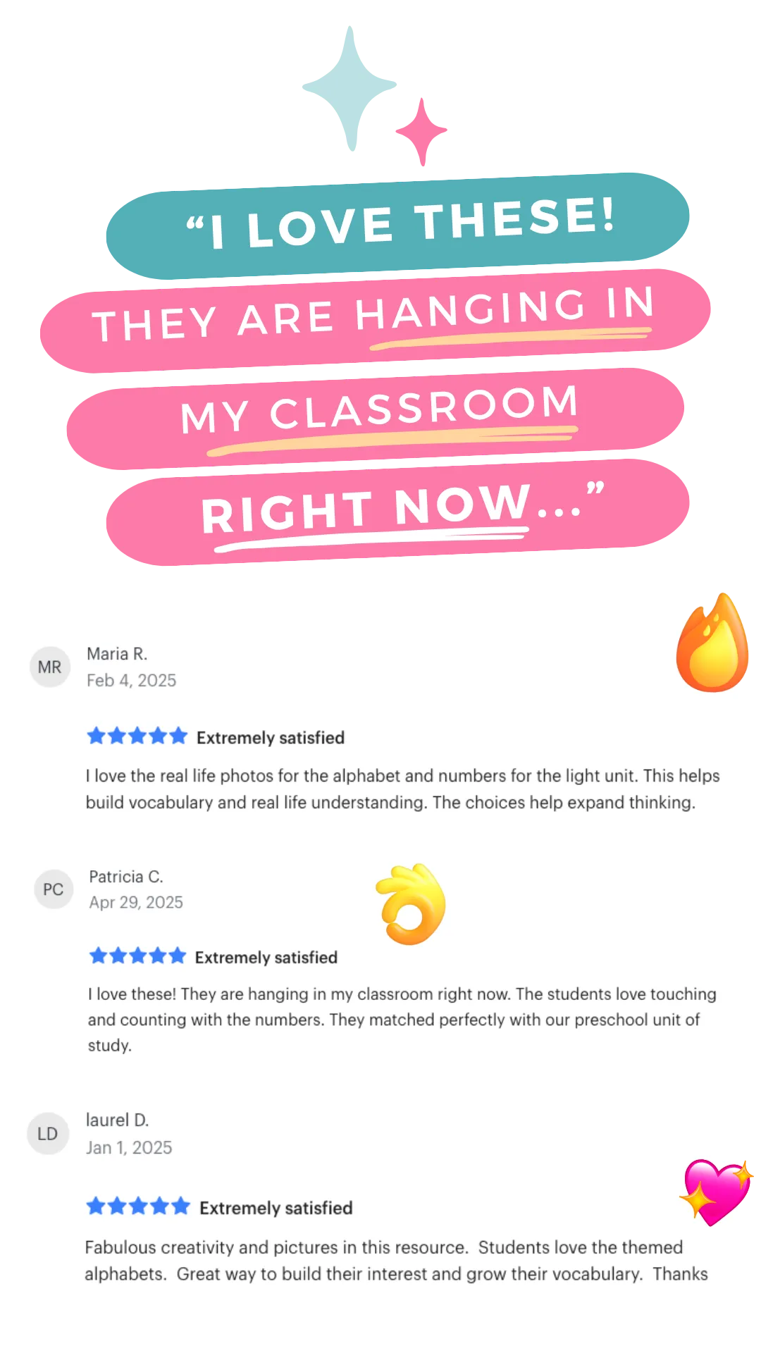 A: These cards are super versatile! Use them in small groups, circle time, literacy or math centers, print hunts, class books, vocabulary walls, or even for ELL support. Teachers also love them for environmental print and real-life connections.