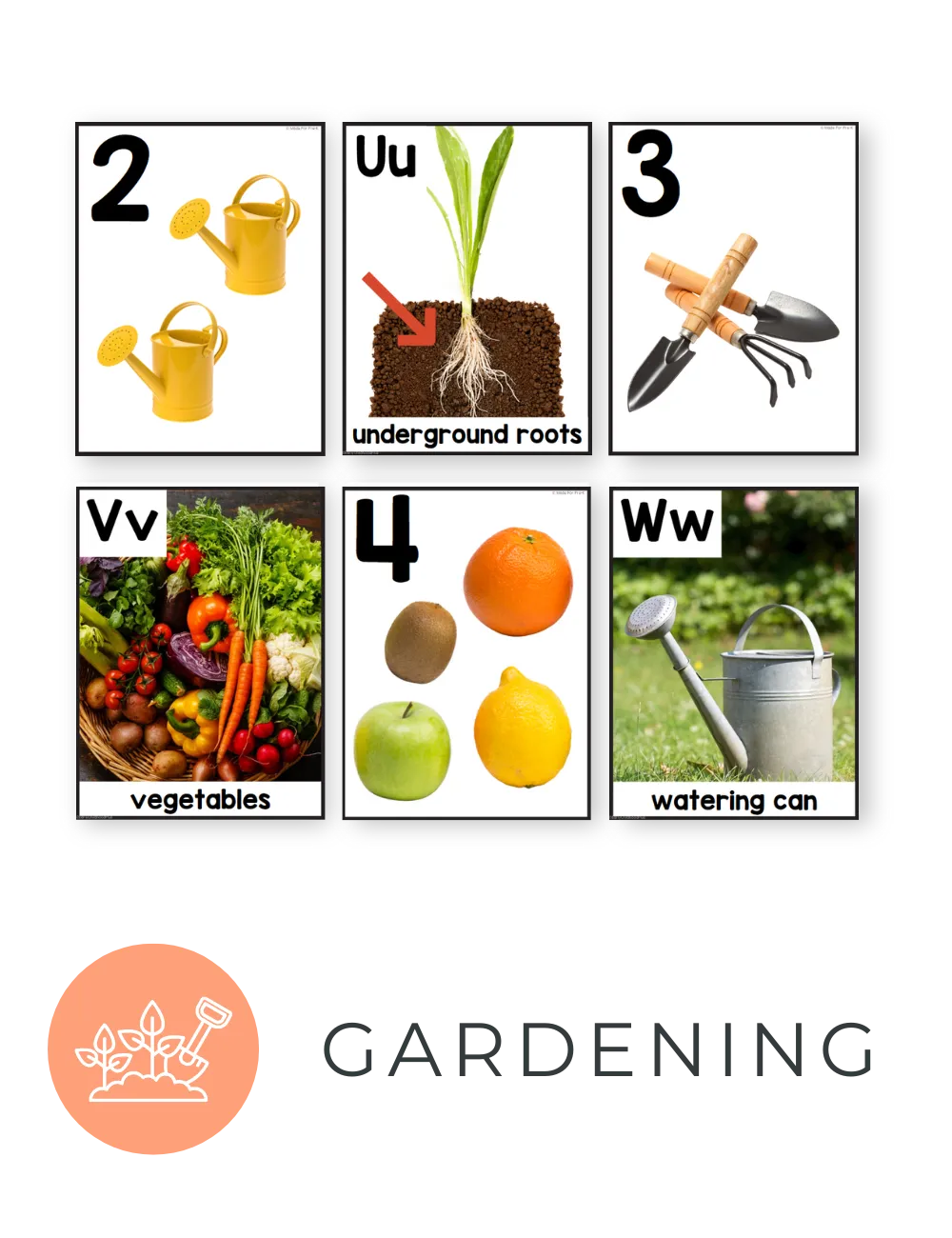 A: You’ll get 30 themed sets, real photo alphabet cards (A–Z) and number cards (1–20), designed to build vocabulary, number sense, and background knowledge. Each set features real-life images preschoolers actually recognize, plus matching vocabulary cards to spark conversation and learning.