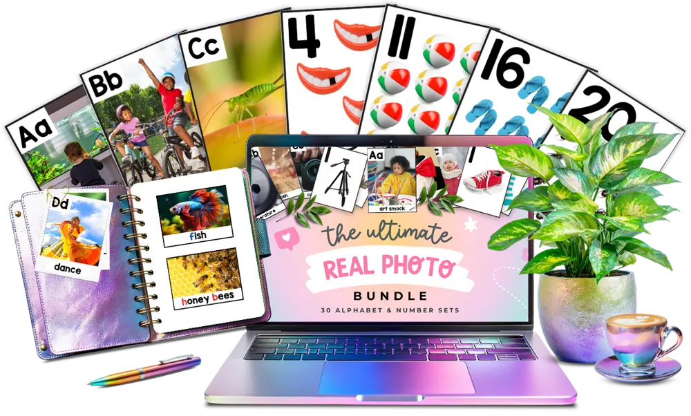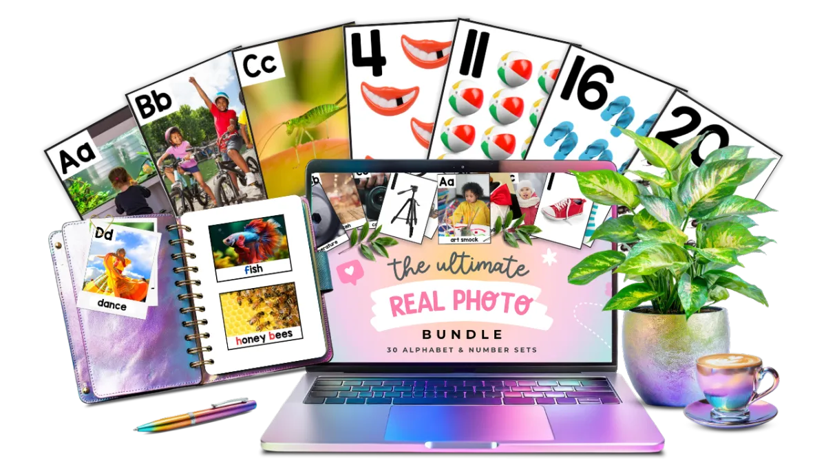 Inside the Real Photo A–Z & 1–20 Bundle, you’ll get 30 themed sets packed with real vocabulary and meaningful visuals that help preschoolers connect what they see to what they’re learning. These aren’t just alphabet and number cards, they’re high-impact tools designed for hands-on, play-based learning.